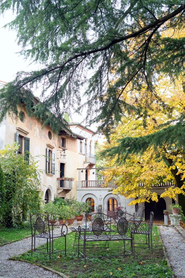 In particolare, abbiamo rinunciato all’uso di sostanze chimiche e investiamo nel riutilizzo circolare delle risorse e nella realizzazione di una nuova visione, anche formale, del giardino. Sebbene si rifaccia alle intenzioni originarie, ne riconosce i limiti e cerca nuove interpretazioni: se non è possibile raggiungere l’ideale del prato all’inglese, diamo invece spazio a margherite, denti di leone e menta selvatica. Tra la convallaria delle aiole crescono erbe selvatiche e i gelsi, che sono spuntati spontaneamente tra i vigneti, saranno conservati.