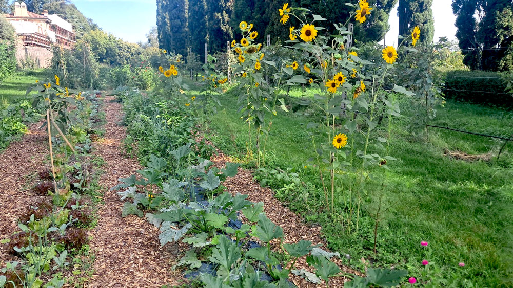 Stiamo integrando il frutteto con nuove piante, con l’idea di farne pian piano una food forest. Si sta sperimentando con una linea agroforestale ed un nuovo orto, costituito sui principi della permacultura. Stiamo sperimentando sul tema delle viti maritate, facendo crescere alberi tra le viti come si faceva una volta. Sono stati piantati più di cento nuovi alberi e continuiamo ad aumentare il numero di specie presenti